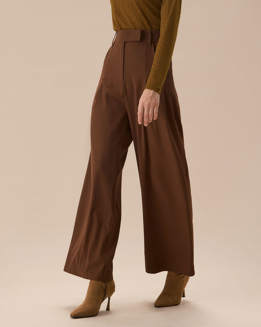 Brown High Waisted Pockets Straight Pants