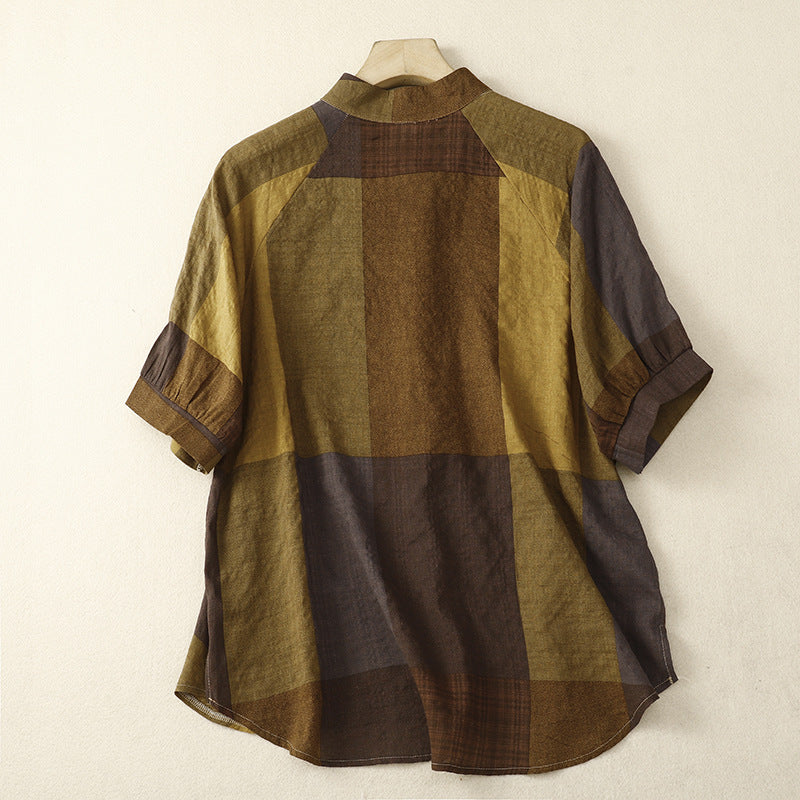 Soft linen meets sharp detailing in this collared beauty. The tonal patchwork offers depth without fuss, and a half placket ensures just the right hint of tailoring. Smart enough for meetings, light enough for midsummer heatwaves.