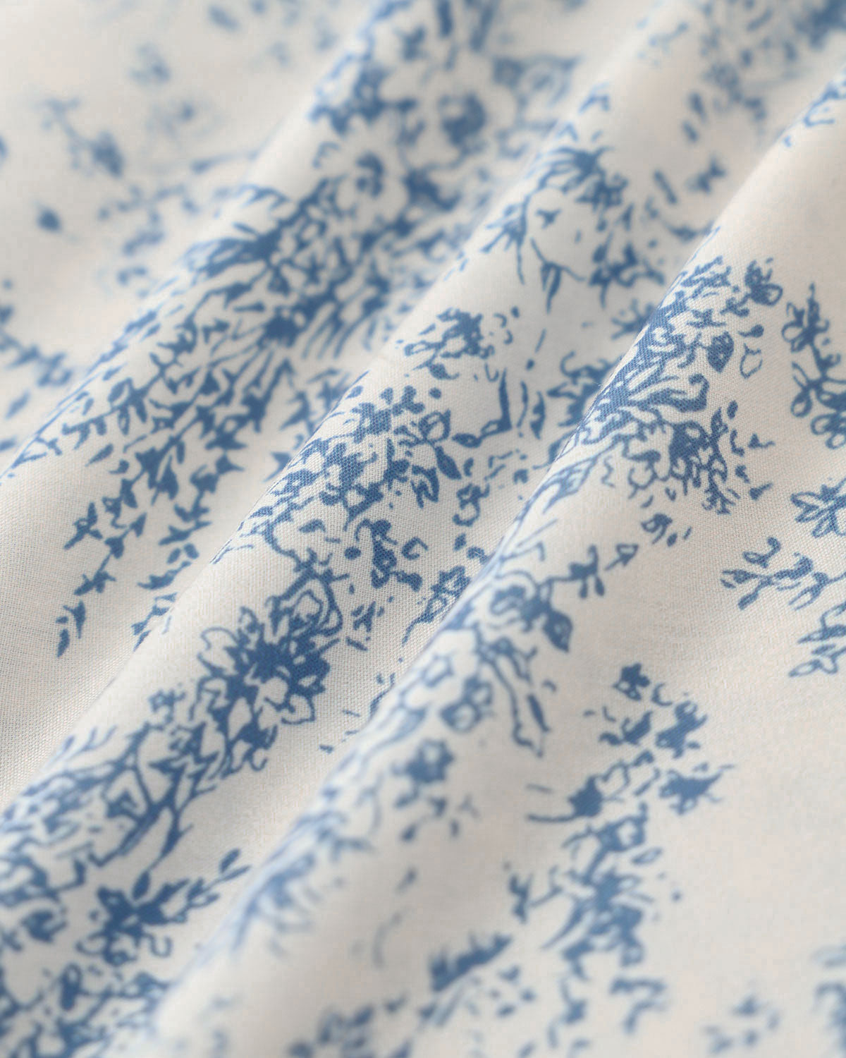 Featuring a delicate blue floral print, this dress showcases a ruched design that enhances its figure-hugging fit. The adjustable straps and slip style offer both comfort and ease, while the lightweight fabric ensures breathability.