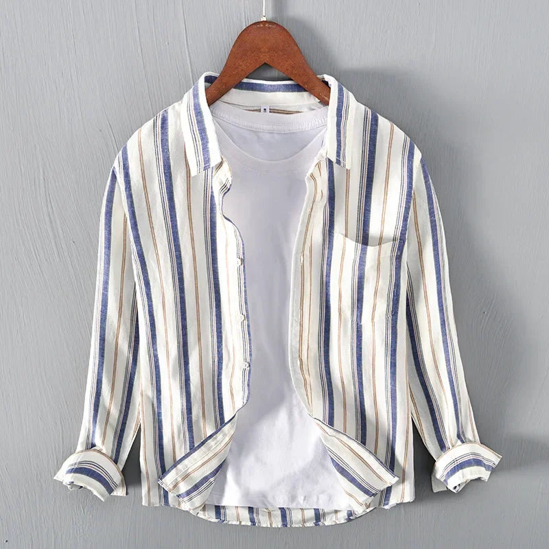 Nothing forced. Nothing loud. Just our signature Gossamer Linen and a perfectly imperfect stripe—clean, lightweight, and distinctly yours.
