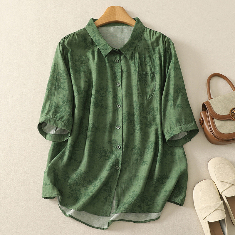 This breathable linen blouse captures the hush of wind through trees. Lightly structured yet softly flowing — for slow days, sunlit errands, and stories told in passing.