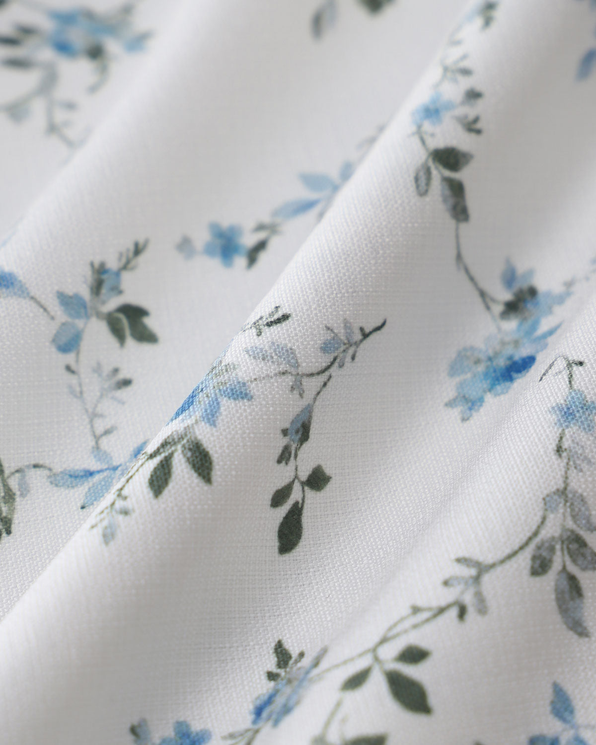 Designed with a charming square neckline and slim adjustable straps, this dress combines a flattering fit with a breezy silhouette. The soft white fabric is adorned with a delicate floral print, making it perfect for garden parties, beach outings, or casual days in the sun.